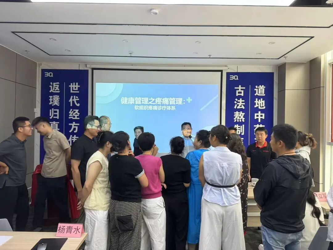 体测区上演沉浸式科技体验:在"返璞归真养身"理念下,学员通过现代设备解码《黄帝内经》"治未病"精髓,操作台数据屏跃动着中医智慧的科学化实证。